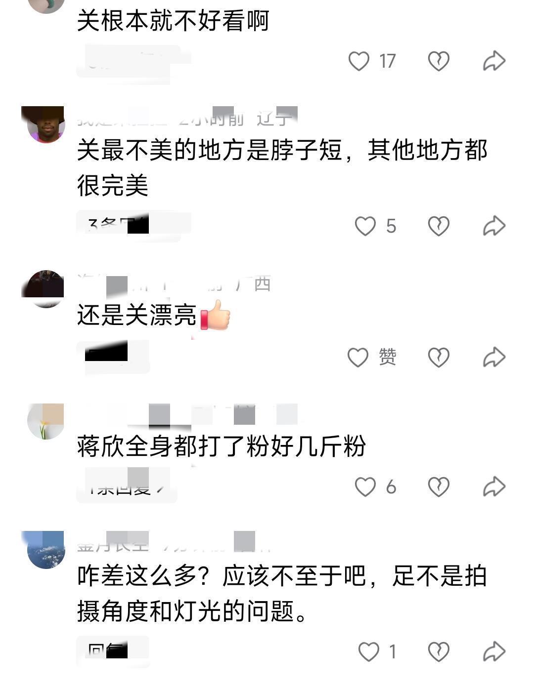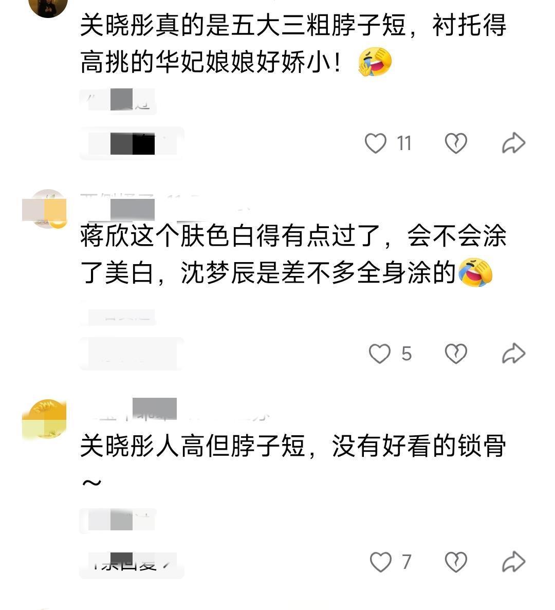 不过蒋欣过白的肤色也遭到网友的质疑,蒋欣的肤色过白有可能是涂白的,因为这皮肤白的发亮不太真实,就像曾经的沈梦辰一样,为了漂亮和掩盖以前的皮肤黑的事实,直接把全身都涂白了。