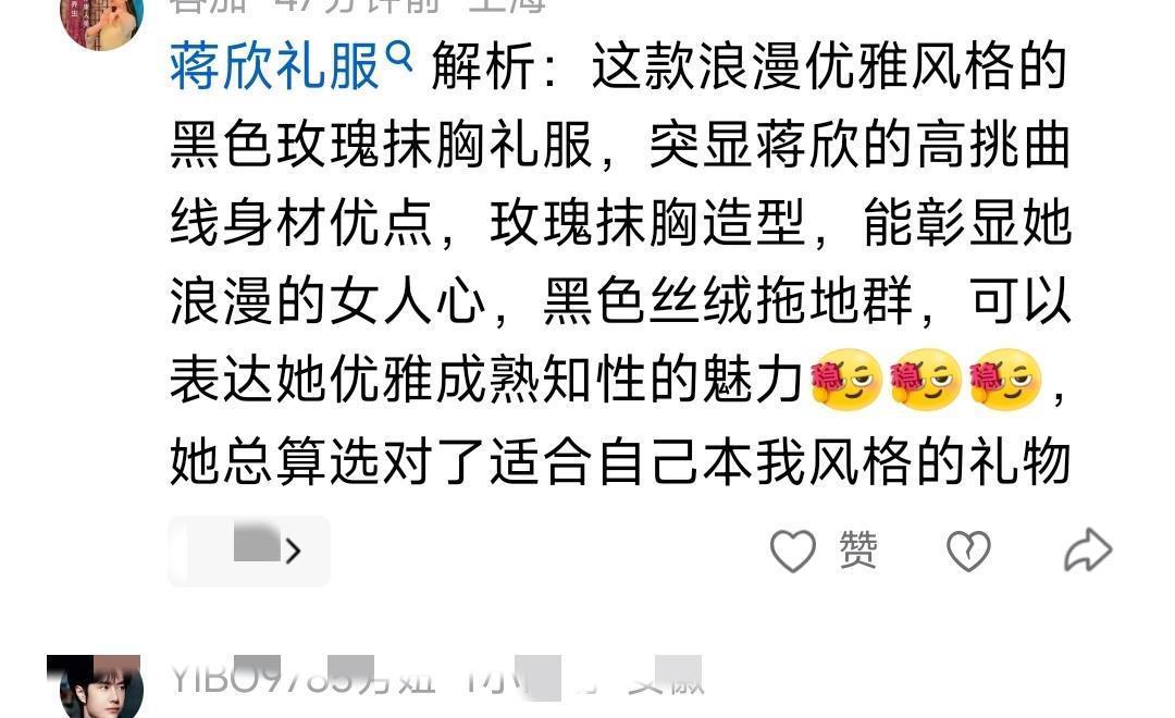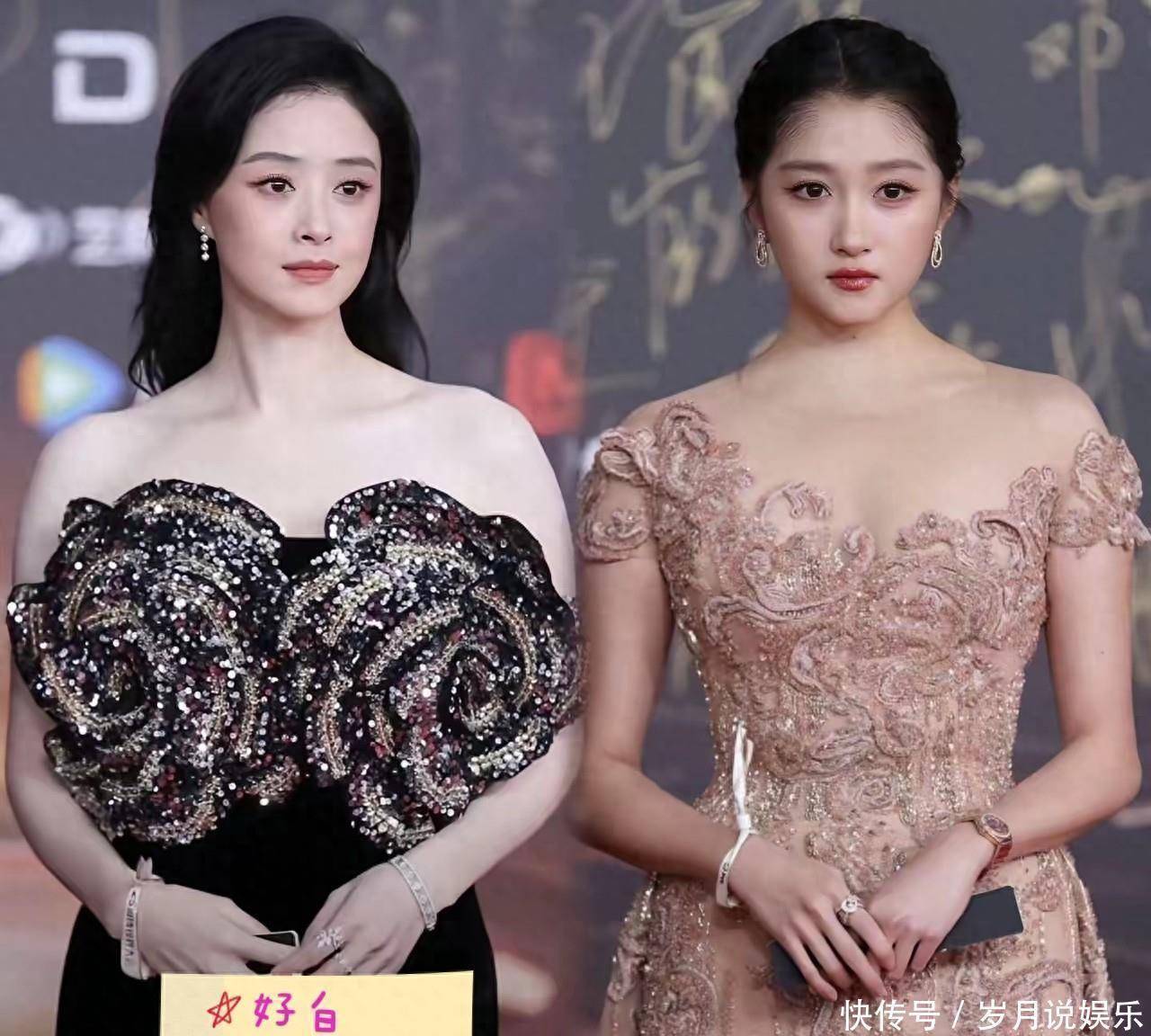 蒋欣虽然和关晓彤一样都是属于骨架大的女星,但是从125斤瘦到96斤的蒋欣脸小,看着更好看了,一条黑丝绒的礼裙显白,两朵大玫瑰花又凸显了特别之处,比关晓彤的礼服更有亮点。